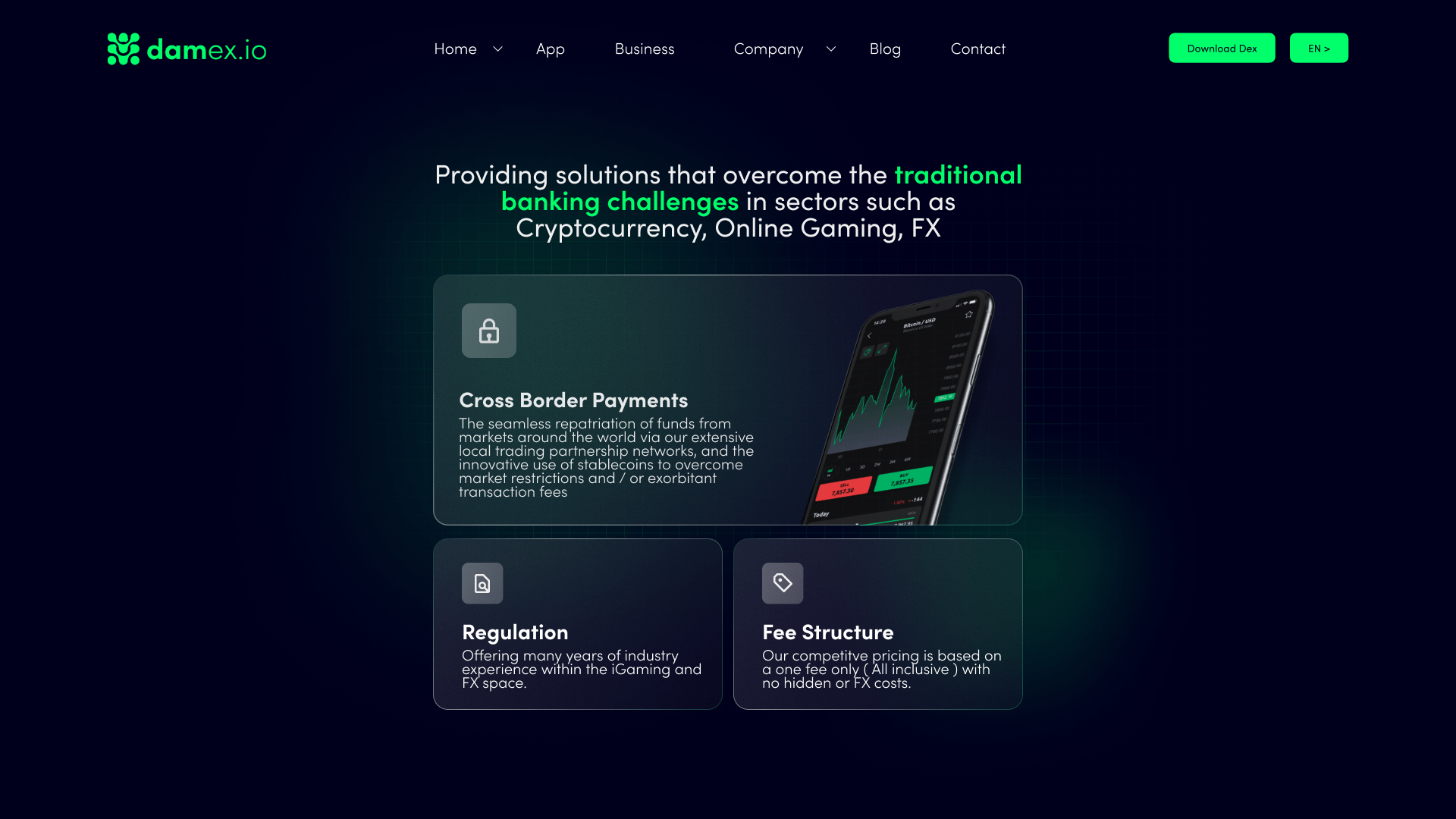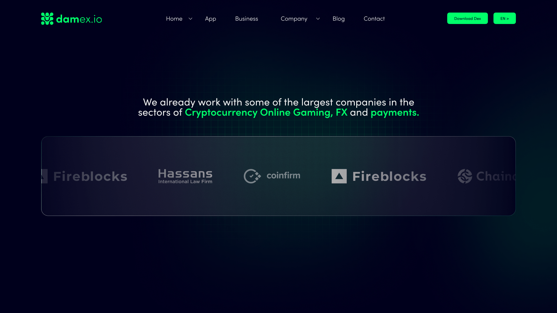 While at Kenshō, I worked on refining and building out Damex.io, focusing on the homepage and business page. Although Damex later moved design in-house, my approved work influenced the live site, with hero sections, layouts, and other key elements carried through.